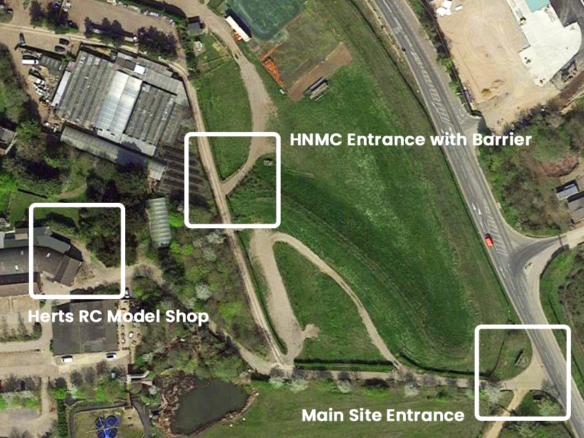 Upon arrival on the day you want to practice please visit Herts RC Model shop to pay your practice fees and collect the gate code and wristband. On Sundays, if the shop is closed, you will need to visit Rib Valley Angling Tackle Shop to pay your fee. This is located adjacent to Herts RC Models. You will need to bring your BRCA card. Also bring you HNMC membership card in order to get track fees at club prices.